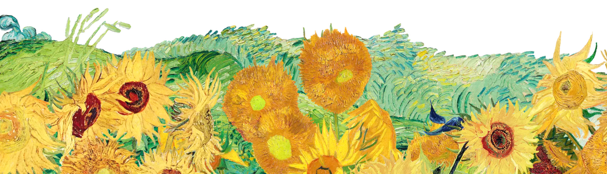 | motifs | blue skies, clouds, sunflowers, & the stars |